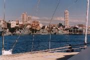 The city skyline from the boat. |