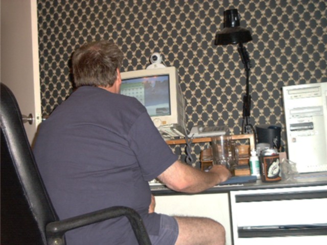 And now a few pix a bored Bree took of me at my computer. |